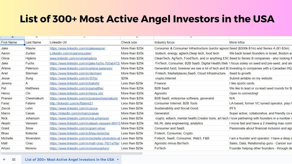 List of 300+ Most Active Angel Investors in the USA