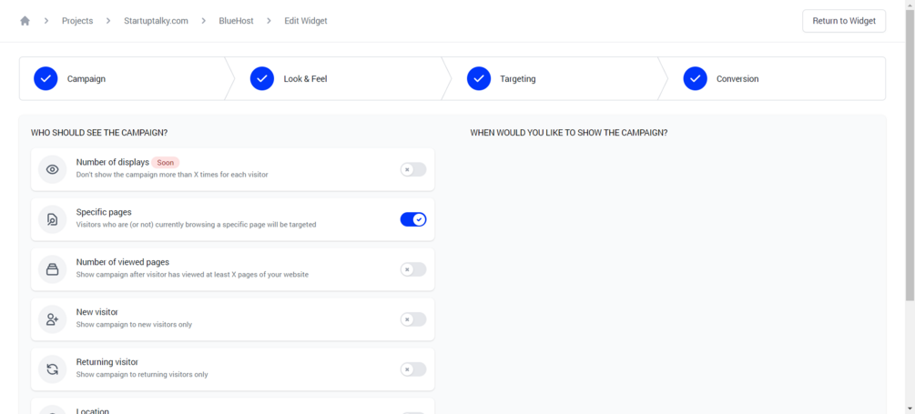 Traffic source targeting: Display campaigns based on specific traffic sources and URLs such as Facebook, and Google AdWords.