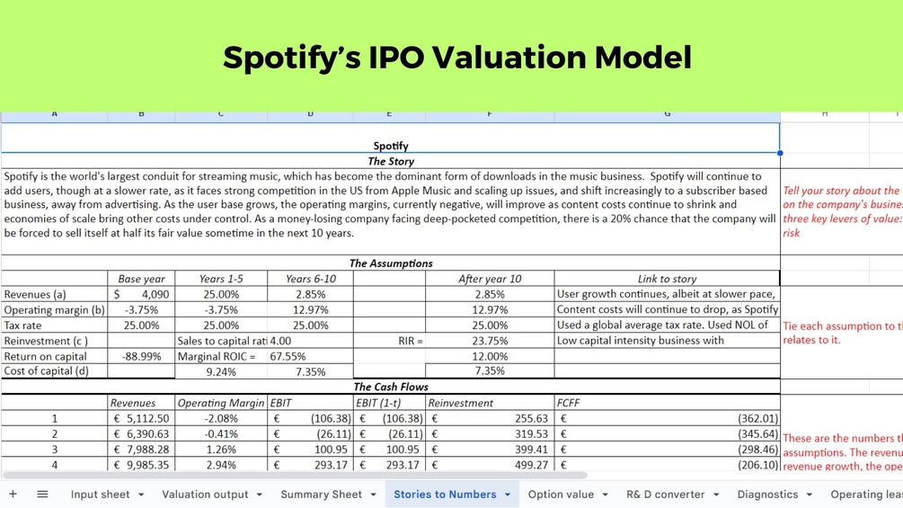 ✨ Financial Transparency: We dissect Spotify's IPO valuation model, explaining the key financial concepts, metrics, and methodologies involved in assessing the company's worth.
