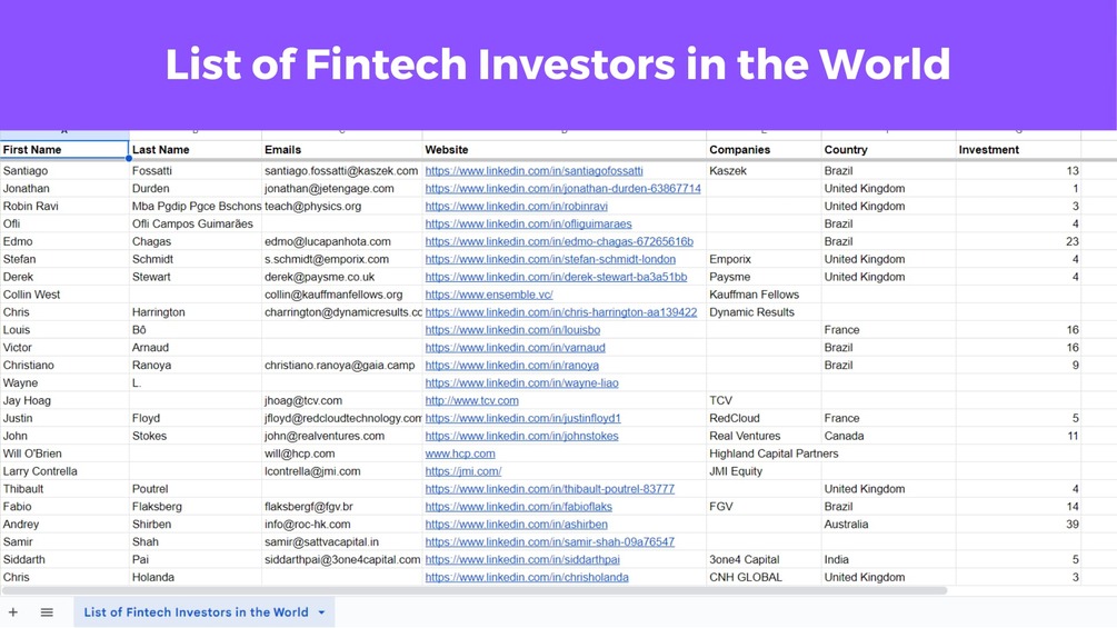 Join the ranks of fintech innovators and investors making waves in the global financial technology sector. Secure your access to the "List of Fintech Investors Worldwide" and position yourself for success in forging valuable connections and strategic collaborations in the ever-evolving world of fintech.